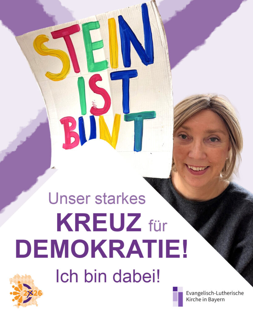 Im Rahmen der bayernweiten ökumenischen Aktion „Unser starkes Kreuz für Demokratie“ im Vorfeld der baldigen Kommunalwahl werden an diesem Freitag, 6. Februar von 15.00-17.00h Pfarrerin Birgit Winkler und Pfarrer Ralph Baudisch mit weiteren VertreterInnen der Kirchengemeinden sowie des „Bündnis für Vielfalt Stein“ vor dem Forum Stein für Demokratie und Rechtsstaat, Vielfalt und Miteinander werben und ansprechbar sein.
